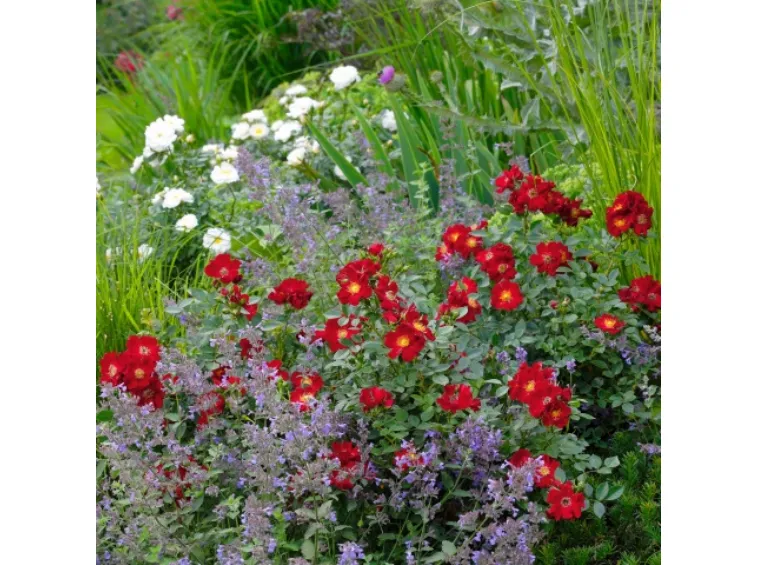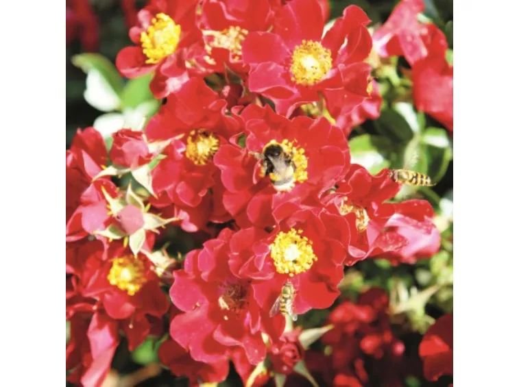 Halbgefüllte Blüte (ca. 2,5 cm Durchmesser), in Büscheln, mit 5-8 roten Blütenblättern. Die Blüten sind dank ihres reichlichen und leicht zugänglichen Pollenvorrats für Bienen sehr attraktiv. Diese Rose ist dauerblühend und resistent gegen Krankheiten. Sie ist auch selbstblühend, buschig, kompakt und erreicht eine Höhe von 60 cm und eine Breite von 60 cm. Das Laub ist glänzend und dunkelgrün. Sie wurde 2013 von Rosen-Tantau eingeführt, und gewann 2014 die Bronzemedaille beim Baden-Badener Rosenwettbewerb und wurde 2019 mit dem Ehrenpreis des Bundesministeriums für Umwelt, Landwirtschaft, Natur und Verbraucherschutz NRW für "bienenfreundliche Innovation im Rosensortiment" ausgezeichnet.
