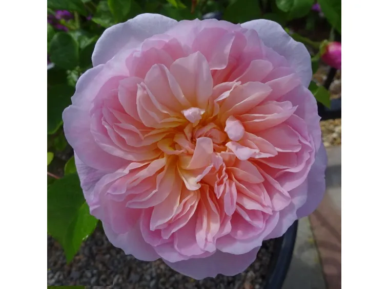 Das Laub ist dunkelgrün und ledrig. Eingeführt von David Austin Roses im Jahr 2022, geeignet sowohl für Topfkultur als auch für Halbschattenbereiche.