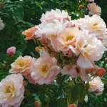 Gefüllte, schalenförmige, mittelgroße Blüten (ca. 8 cm Durchmesser, in Dolden angeordnet), bestehend aus etwa 20 Blütenblättern, deren Farbe schwer zu beschreiben ist, da sie sich während der Blütezeit verändert: Die Grundtöne sind Rosa-Orange mit Beige, es können jedoch auch bräunliche Nuancen und ein Hauch von Violett auftreten. Der Duft ist intensiv und erinnert an exotische Früchte.