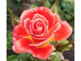 Sie hat einen angenehmen Duft und wurde von Massad im Jahr 2009 ausgewählt. Diese Rose hat doppelte, becherförmige Blüten mit 17-25 korallenlachsfarbenen Blütenblättern und einem hellgelben Rücken. Sie blüht die ganze Saison über in Trauben. Die Pflanze ist kompakt, krankheitsresistent mit dunkelgrünem Laub, ideal für trockenes, heisses Klima. Sie erreicht eine Höhe von 90cm und eine Breite von 100cm. Angesichts der Blumenfülle ist sie ideal für Rabatten oder Rosenbeete.