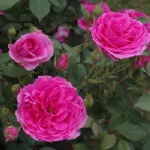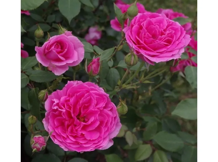 Kräftiger, aufrechter Strauch, der eine Höhe von 200 cm und eine Breite von 150 cm erreicht; wenige bis fast keine Dornen an den Zweigen, mit feinem, glänzend hellgrünem Laub.