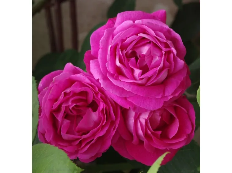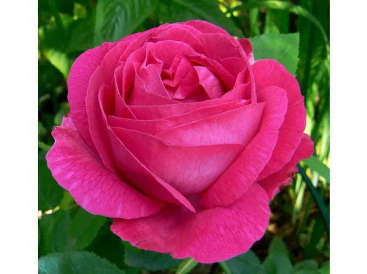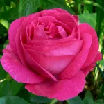 Große, fast kugelförmige, stark gefüllte, schalenförmige Blüte mit einem Durchmesser von 13 cm, bestehend aus etwa 40 Blütenblättern, die sich zur Mitte hin einrollen, während sich die äußeren Blütenblätter nach unten biegen; kirschrosa Farbe mit intensivem Duft.