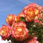 Sehr große, gefüllte, schalenförmige Blüten mit einem Durchmesser von 12 cm, bestehend aus 35 bernsteinfarbenen Blütenblättern mit rotem Rand. Öfterblühend und sehr krankheitsresistent, wächst kräftig bis zu 300 cm Höhe und 50 cm Breite. Das Laub ist dunkelgrün.