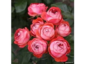 Kleine gefüllte Blüten, 17-25 Blütenblätter mit einem Durchmesser von 5 cm, kupfergelbe Blüte, an den Rändern der Blütenblätter tendenziell rot. Kräftiges und kompaktes Wachstum, erreicht sie eine Höhe von 40-50 cm. Sehr üppig und ununterbrochen blühend, mit Miniaturblumen, sehr fröhlich.