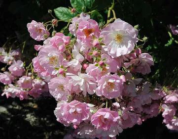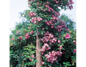 Zu den bekanntesten und am meisten geschätzten Rambler-Rosen gehört die Albertine-Rose, deren Name sich von Prousts Albertine ableitet (in seinem Werk "Auf der Suche nach der verlorenen Zeit"). Diese Sorte hat kupfer-, lachs- und aprikosenfarbene Blütenblätter. Die Blüten sind groß und verströmen im Raum einen köstlichen und intensiven Duft.