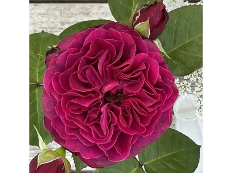 Eine altmodische, große, gefüllte, schalenförmige Blüte mit einem Durchmesser von 12 cm und tiefvioletten Blütenblättern, die auch für das unaufmerksame Auge deutlich sichtbar sind. Der Duft ist stark und berauschend. Wiederblühend; gesunde, krankheitsresistente Sorte, die bis zu 120 cm hoch wird; für den Schnitt geeignet.